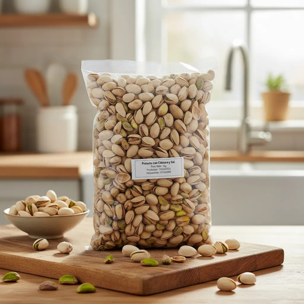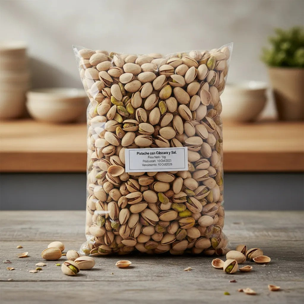 El empaque de 1 Kg es perfecto para compartir en reuniones familiares, picnics y eventos sociales, o simplemente para disfrutar en la comodidad de tu hogar. Con su atractivo sabor y textura, los pistaches con cáscara son el complemento perfecto para tus momentos de relax o para acompañar un buen vino.
